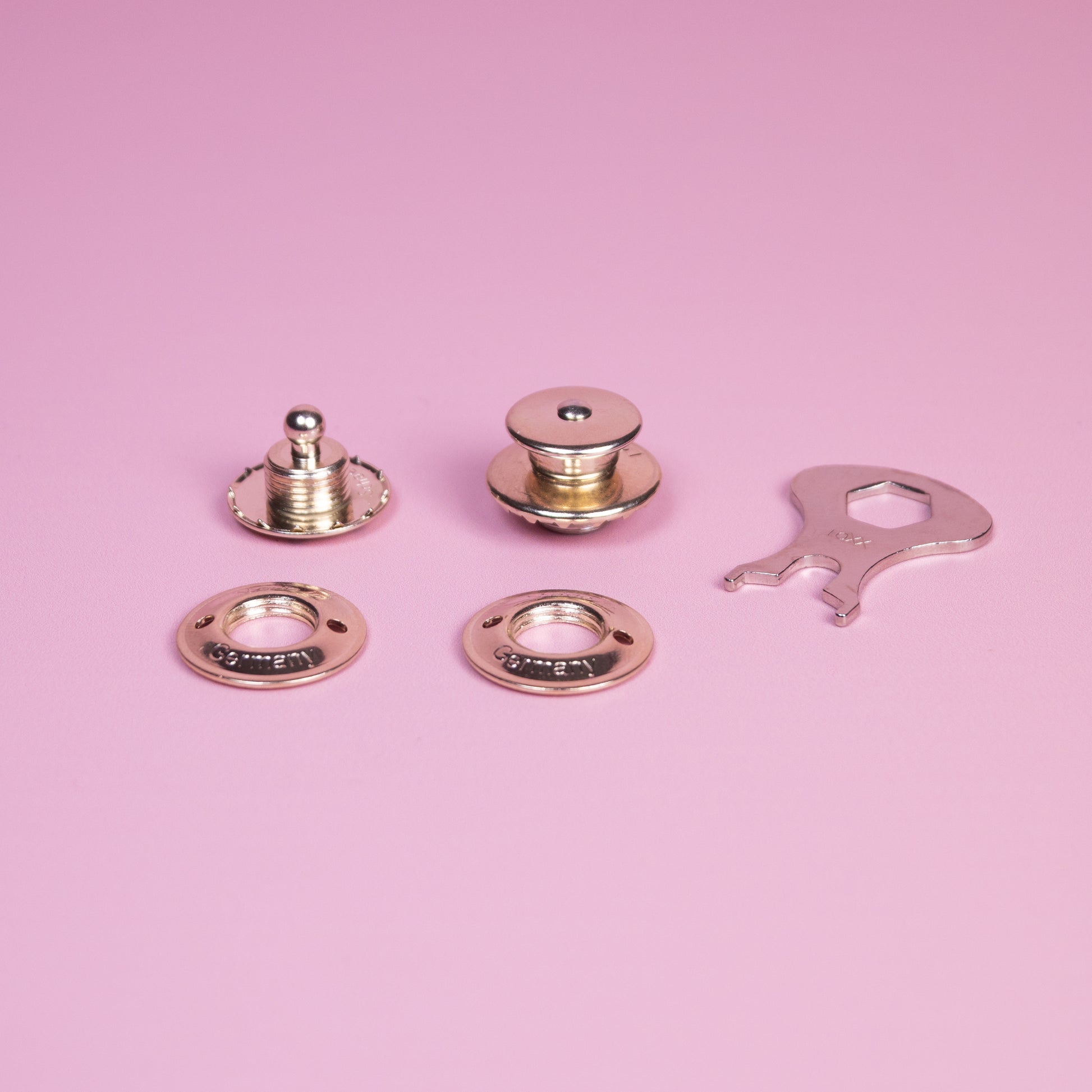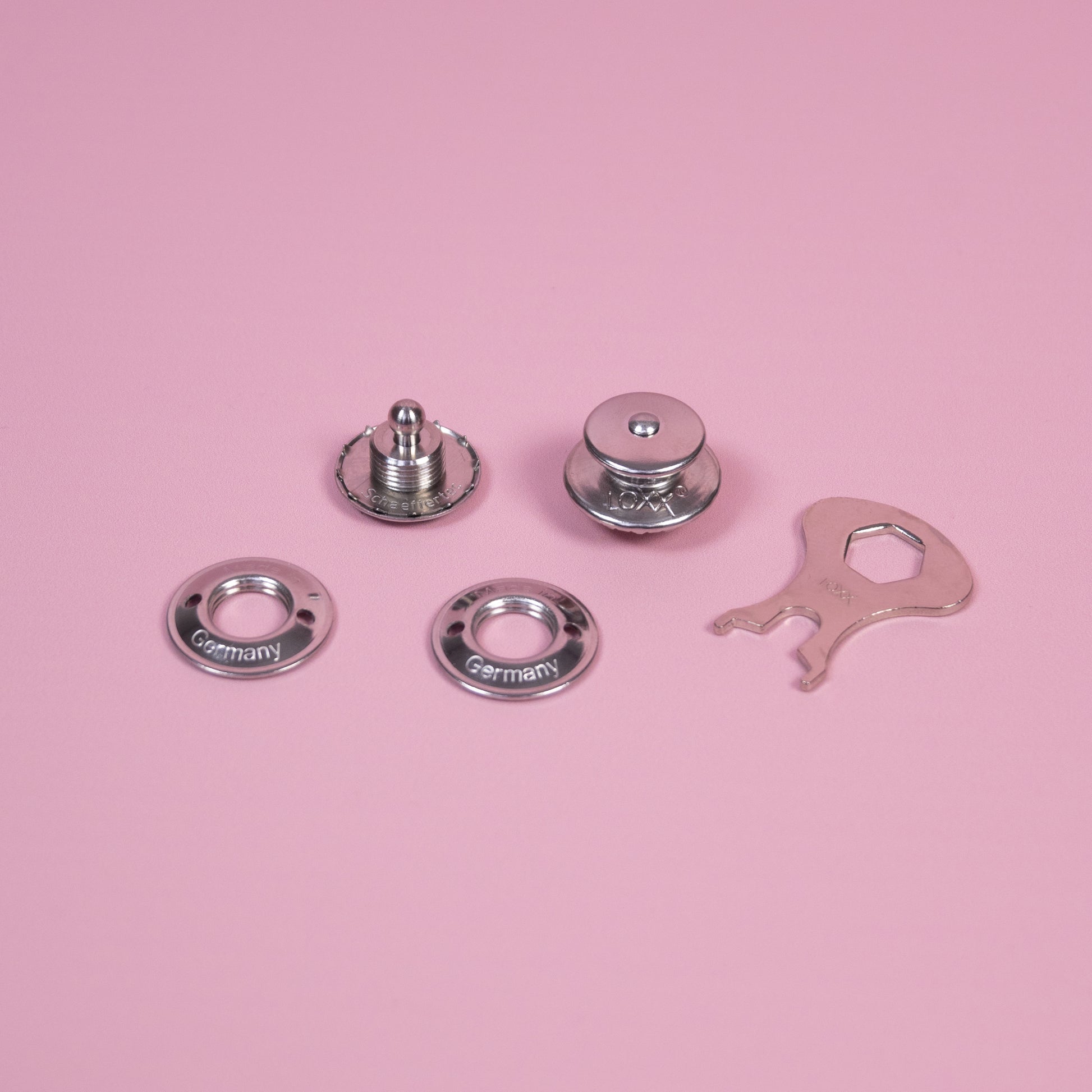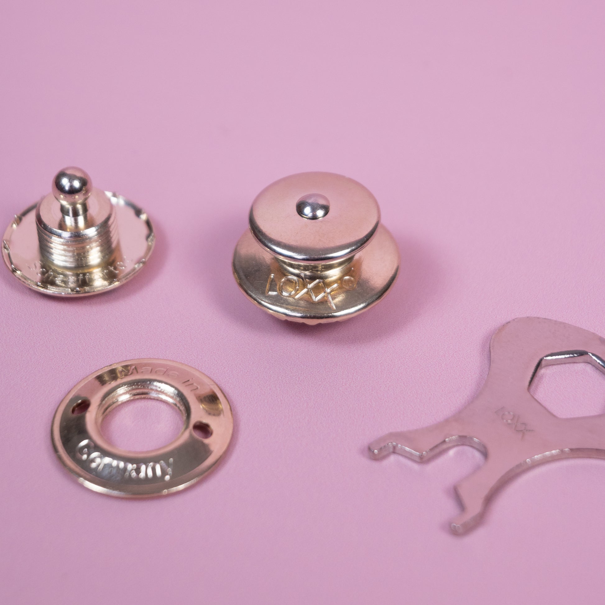 Fermoir à clic pour la fixation au corps du sac et au rabat du sac, y compris la clé.